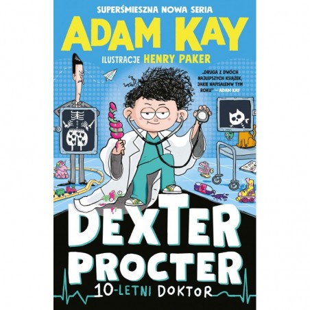 Od najmłodszych lat było wiadomo, że Dexter Procter jest inny niż wszyscy. Dexter zaczął mówić już po czterech sekundach od swoich narodzin. W wieku trzech lat miał za sobą już 87 zdanych matur na poziomie rozszerzonym – od języka afrikaans aż po zoologię. Jak dziesięciolatek rozpoczął pracę na stanowisku pediatry w szpitalu Lilydale. Mimo kochającej (choć czasem lekko irytującej) rodziny oraz dwojga dobrych przyjaciół (Rupi oraz Ottona) Dexter zawsze miał problem z wpasowaniem się w środowisko. Zmaga się też ze swoim śmiertelnym wrogiem (doktorem Drakiem) i dość poważnym incydentem w szkole (wszyscy nauczyciele cierpią na paskudny przypadek biegunki) – czy Dexterowi uda się zachować posadę, uratować szkołę i odnaleźć swoje miejsce? (Spoiler: tak!) Oto rozśmieszająca do łez historia o najmłodszym lekarzu na świecie napisana przez znanego i lubianego Adama Kaya i ozdobiona niezwykłymi ilustracjami Henry’ego Pakera!