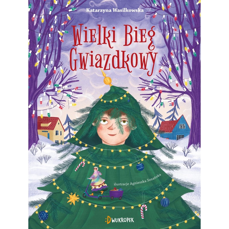 Tadzio właśnie przeprowadził się z tatą do nowego domu. Mamę zna tylko ze zdjęć – umarła, kiedy był bardzo mały, ale często rozmawia z nią w myślach. Ulica, przy której mieszkają, wydaje się trochę nudna. Z jednym wyjątkiem: w murze sąsiedniej posesji jest duży otwór ze złotą ramą, a w nim pojawiają się zaskakujące instalacje. Na dodatek pod drzewem stoi tam fioletowo-turkusowa hulajnoga. Z przyczepką! Tymczasem w szkole trwają przygotowania do Wielkiego Biegu Gwiazdkowego. Chłopiec bardzo chce wziąć w nim udział. Bardzo chce też poczuć się częścią szkolnej drużyny. Niestety, nie jest dobry w biegach, poza tym interesuje go inny sport niż większość kolegów… Czy Tadziowi uda się osiągnąć to, czego tak bardzo pragnie? Jaką rolę odegra w tym wszystkim ekscentryczna sąsiadka? I kto przy świątecznym stole będzie zbłąkanym wędrowcem? Nieoczywista i wzruszająca opowieść w świątecznym klimacie – o relacjach, nie zawsze łatwych wyborach, byciu sobą i marzeniach. Otulająca jak ciepły koc w zimowy wieczór.