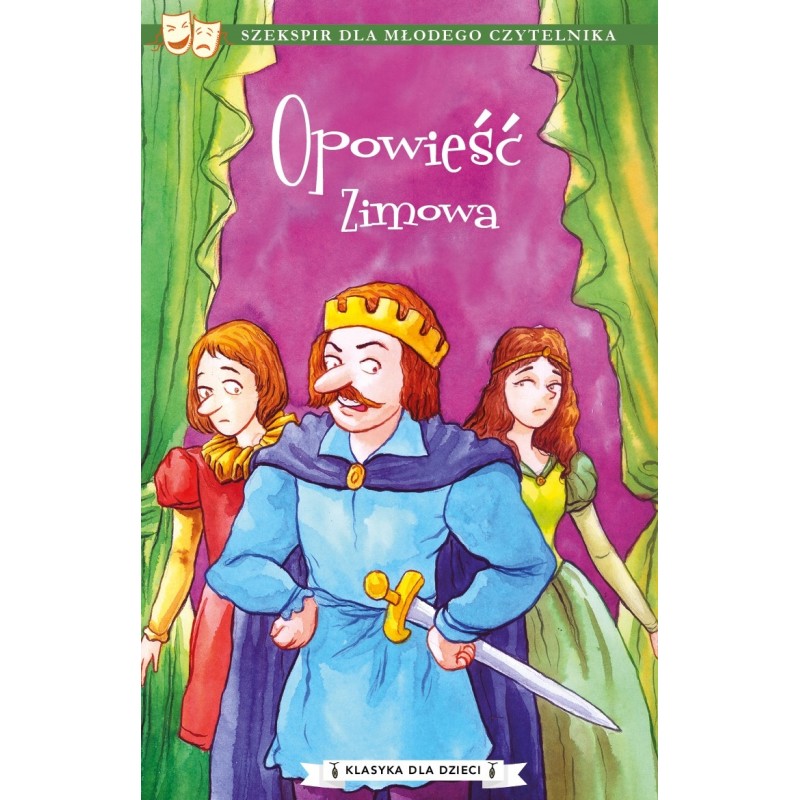 „Opowieść zimowa” to jedna z najpopularniejszych komedii Williama Szekspira. Sztuka została po raz pierwszy opublikowana w 1623 roku, i od tego czasu z wielkim powodzeniem wystawiana była na całym świecie. Jej akcja toczy się na Sycylii, wokół głównej postaci Króla Leontesa, którego dręczą obawy o lojalność żony. Zazdrość prowadzi go do planowania zabójstwa najlepszego przyjaciela, uwięzienia ukochanej i wyparcia się nowo narodzonego dziecka. Akcja sztuki toczy się przez szesnaście długich lat, podczas których Leontes zaczyna rozumieć swe błędy i w końcu odzyskuje żonę i córkę. Krótka narracyjna wersja sztuki została dostosowana do potrzeb młodego czytelnika. Może być słuchana przez dzieci samodzielnie lub w towarzystwie rodziców chcących wyjaśnić swym pociechom dodatkowe zawiłości dzieła Szekspira. Może być także wykorzystana przez nauczycieli jako pomoc w nauce.