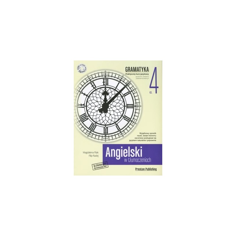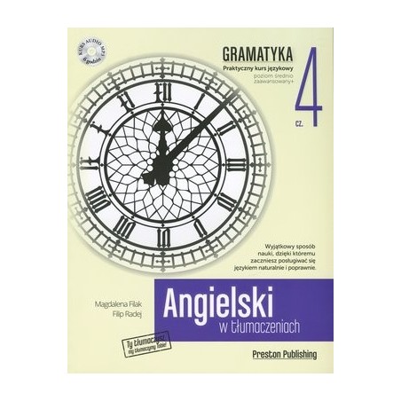 Angielski w tłumaczeniach. Gramatyka 4 to książka umożliwiająca ćwiczenie płynności mówienia w połączeniu z nauką ciekawych struktur gramatycznych. To idealne narzędzie dla tych, którzy chcą poznać i poćwiczyć zagadnienia na poziomie odpowiadającym poziomowi B2 w skali europejskiej.