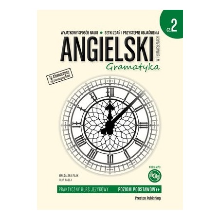 Druga część praktycznego kursu, który łączy w sobie ćwiczenie umiejętności mówienia z nauką zagadnień gramatycznych. Zawiera klarowne objaśnienia oraz ponad 1200 zdań i niezbędnych wyrażeń na poziomie podstawowym plus (A2) wraz z odpowiedziami. Mogą z niej również korzystać ci, którzy są już na wyższym poziomie i chcą powtórzyć podstawowe zagadnienia gramatyczne.