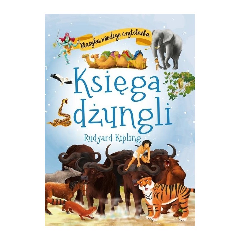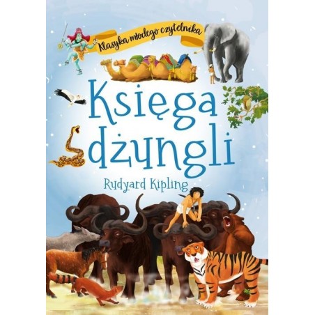 Klasyka młodego czytelnika to seria ponadczasowych, znanych i lubianych utworów dla dzieci wzbogacona kolorowymi ilustracjami. Księga dżungli to zbiór indyjskich opowiadań, dotyczących Indii i ich folkloru. W jej skład wchodzi siedem opowiadań. Trzy pierwsze – Bracia Mowgliego, Łowy węża Kaa i Tygrys, tygrys! – to historie chłopca o imieniu Mowglie, wychowanego przez wilki. W dżungli chłopcu towarzyszą także pantera Bagheera i niedźwiedź Baloo i to oni wraz z wilkami są odpowiedzialni za jego wychowanie. Pozostałe opowiadania to m.in. historia foki, która poszukiwała wyspy, na której nie będzie zagrażających fokom ludzi, a także mangusty Rikki--Tikki-Tavi, która w obronie swojej ludzkiej rodziny stoczyła bohaterską walkę z kobrami. W utworze prawa dżungli odgrywają nadrzędną rolę, są surowe, rygorystyczne, ale również sprawiedliwe. Kipling ukazał społeczeństwo zwierząt niemal jako utopię w opozycji do społeczeństwa ludzi, zarazem nie idealizując mieszkańców dżungli. Opowiadania zawarte w zbiorze to pouczające historie, poruszające m.in. problem przyjaźni, inności, odpowiedzialności za drugiego człowieka.