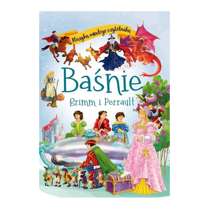 Klasyka młodego czytelnika to seria ponadczasowych, znanych i lubianych utworów dla dzieci wzbogacona kolorowymi ilustracjami. Niniejsza książka przeniesie Cię w niezwykły świat baśni. Poznasz sprytnego Kota w Butach, zajrzysz do chatki z piernika razem z Jasiem i Małgosią, znajdziesz się na królewskim balu z Kopciuszkiem, spotkasz Czerwonego Kapturka i wilka. Dowiesz się, jakie dary otrzymała od trzynastu wróżek Śpiąca Królewna, poznasz przygody Śnieżki i dzielnego chłopca imieniem Tomcio Paluszek. Wraz z osiołkiem wyruszysz w podróż do Bremy, a przy leśnym strumieniu spotkasz wróżkę, która rozdaje niezwykłe podarunki. Kolorowy świat baśni stoi przed Tobą otworem... Wystarczy, że zajrzysz do środka i zaczniesz czytać.