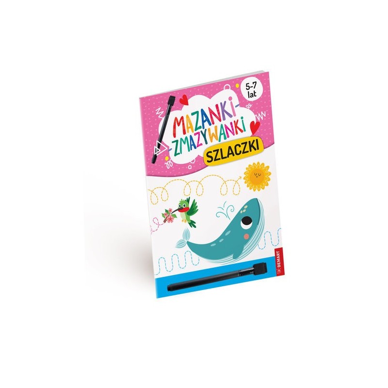 To publikacja, która w formie niezwykle atrakcyjnych, kolorowych i zróżnicowanych zabaw ze szlaczkami w pionie, w poziomie, po kropkach, kreskach, śladzie, w tunelu, bez odrywania ręki, ze szlaczkami obrazkowymi i tradycyjnymi w powiększonej liniaturze i kratownicy: • stymuluje precyzję ruchów, • doskonali koordynację wzrokowo-ruchową, • reguluje napięcie mięśniow Od tego, w jaki sposób Twoje dziecko opanuje pisanie – jedną z kluczowych umiejętności w wychowaniu przedszkolnym i edukacji wczesnoszkolnej, zależy powodzenie na dalszych poziomach kształcenia. Seria książek z pisakiem suchościeralnym, dzięki którym Twoje dziecko ma szansę rozwijać motorykę małą, czyli sprawność dłoni i palców, i nie zrażać się, że coś poszło nie tak! Twoja pociecha może osiągnąć sukces w nauce kreślenia i pisania!e w obrębie dłoni i obręczy barkowej.