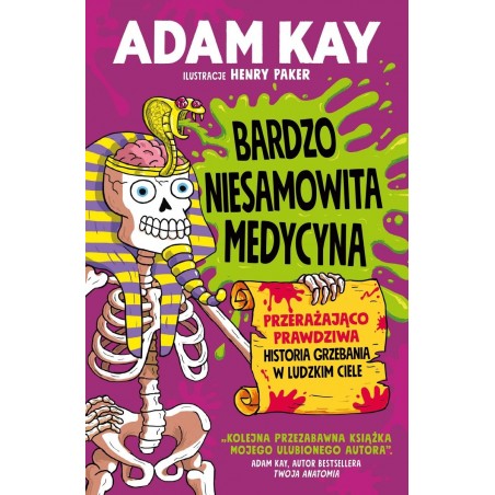 Nowa okropnie śmieszna książka Adama Kaya, autora bestsellerowej „Twojej anatomii”! Dawno, dawno temu… było całkiem zabawnie, o ile ktoś lubił nosić kolczugę albo ścinać ludziom głowy. Istniał tylko jeden malutki problem – lekarze nie mieli bladego pojęcia, w jaki sposób funkcjonuje ludzkie ciało. Dlatego w przeszłości usta płukano moczem, fryzjerzy odcinali swoim klientom kończyny, a ludziom płacono za puszczanie bąków (niestety, ta oferta już nie jest aktualna). Zatkaj więc nos klamerką (bo zapachy, na które się natkniesz, mogą cię zwalić z nóg) i zacznij odkrywać przerażająco prawdziwą historię grzebania w ludzkim ciele. Oto... „Bardzo niesamowita medycyna”! Ta prześmieszna książka sprawi, że przybędzie nam młodych lekarzy. – „Sunday Express” Kolejna przezabawna książka mojego ulubionego autora. – Adam Kay, autor bestsellera „Twoja anatomia”