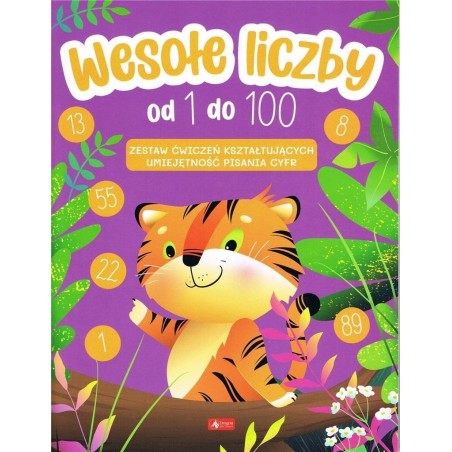 Wesołe liczby od 1 do 100 to zestaw ćwiczeń wspomagających naukę pisania cyfr i pozwalających dziecku oswoić się z liczbami od 1 do 100.