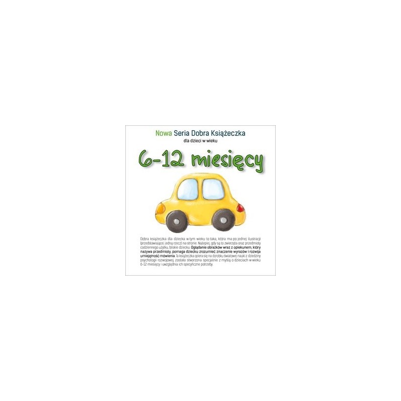 Dobra książeczka dla dziecka w tym wieku to taka, która ma po jednej ilustracji (przedstawiającej jedną rzecz) na stronie. Najlepiej, gdy są to zwierzęta oraz przedmioty codziennego użytku, bliskie dziecku. Oglądanie obrazków wraz z opiekunem, który nazywa przedmioty, pomaga dziecku zrozumieć znaczenie wyrazów i rozwija umiejętność mówienia. Ta książeczka opiera się na dorobku światowej nauki z dziedziny psychologii rozwojowej, została stworzona specjalnie z myślą o dzieciach w wieku 6-12 miesięcy i uwzględnia ich specyficzne potrzeby.