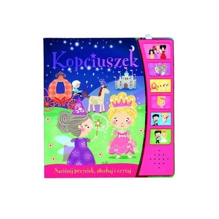 Przenieś się do krainy bajek. Naciskając kolejno sześć dźwiękowych przycisków, usłyszysz śliczną baśń i poznasz historię ze świata dobrych wróżek, królewskich balów i szklanych pantofelków.