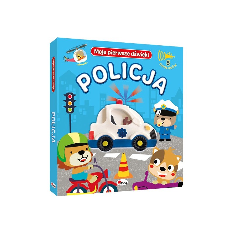 Książka zabiera małych czytelników w niezapomnianą PODRÓŻ. Dzieci znajdą w niej krótkie WIERSZYKI związane z pracą wozu policyjnego oraz WYRAZY NAŚLADUJĄCE ODGŁOSY wydawane przez ten pojazd. Wyróżnikiem publikacji jest silikonowy moduł dźwiękowy w kształcie pojazdu prezentujący 5 różnych DŹWIĘKÓW. Dzięki książce maluch dowie się, jakie dźwięki wydają poszczególne części wozu policyjnego. Sympatyczne ILUSTRACJE charakteryzują się ŻYWĄ KOLORYSTYKĄ. ,