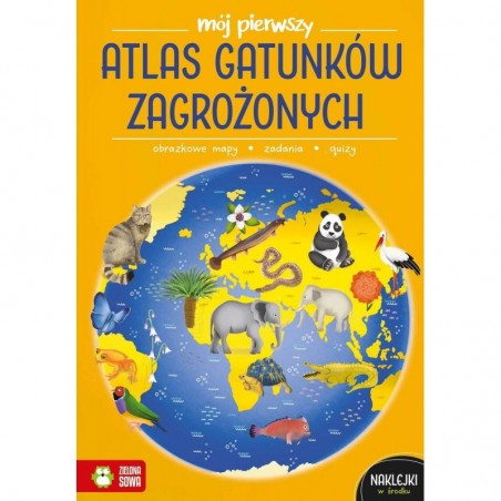 „Mój pierwszy atlas gatunków zagrożonych” to zeszyt edukacyjny dla dzieci w wieku wczesnoszkolnym. Każda rozkładówka porusza inny temat i jest wzbogacona ciekawostkami oraz zadaniami do wykonania, powiązanymi z zaprezentowaną wiedzą. Zeszyt dotyczy gatunków zagrożonych zarówno roślin, jak i zwierząt. Atlas porusza zagadnienia: rodzaje obszarów chronionych, wymarłe gatunki zwierząt i roślin, ssaki, ptaki, gady, płazy, ryby zagrożone wyginięciem, chronione owady, rośliny pod ochroną.