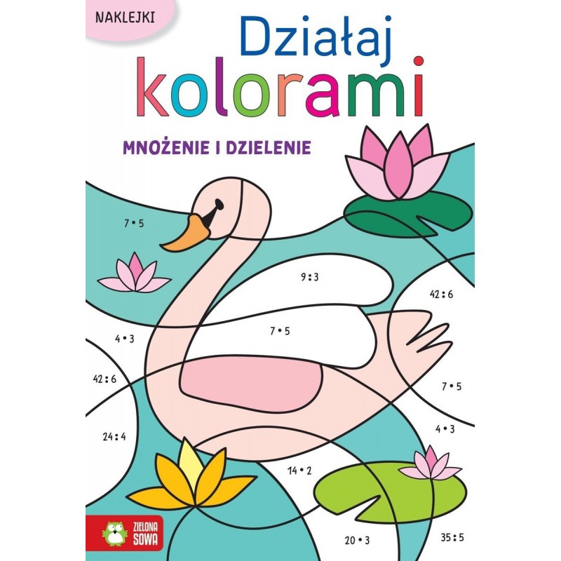 Chwyć kredki i rozwiązuj działania mnożenia i dzielenia. Pokoloruj obrazki według otrzymanych wyników i przyklej naklejki. Baw się matematyką jak nigdy dotąd!