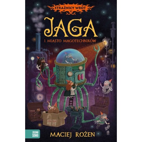 Przed Jagą kolejna misja! Jaga Kurzastopka z pomocą mistrza Twardowskiego i przyjaciół z Niespokojnej Bandy ponownie udaremniła smokom powrót na Ziemię. Ale prastare gady nie porzuciły planu zawładnięcia światem. Dragonis Wawelski i jego poplecznicy znów knują. Młoda czarownica dobrze o tym wie. Martwi ją coś jeszcze – Cykor, który wyruszył poznać swoje przeznaczenie, przepadł bez wieści, a Nieustraszony rozrasta się w niekontrolowanym tempie! Skoki mocy w jego wnętrzach zaczynają niebezpiecznie oddziaływać na cały glob. Jakiego czaru użyć, by uspokoić wiekowy dom na orlich nogach? Czy na świecie istnieje jeszcze magia zdolna przeciwstawić się jego sile? Pomoc nadchodzi z Wrocławia, miasta otulonego aurą nieistotności, w którym rządzi rasa nikłego wzrostu, ale wielkich umysłów, a magię wykłada się na uniwersytecie. Do Nieustraszonego przybywa grupa magotechników – oddział wrocławskich krasnali do zadań specjalnych. „Jaga i miasto magotechników” to trzeci tom serii „Strażnicy Wrót” – opowieści o przygodach tytułowej czarownicy. Książki łączą elementy świata magicznego, słowiańskiej mitologii i polskich legend.