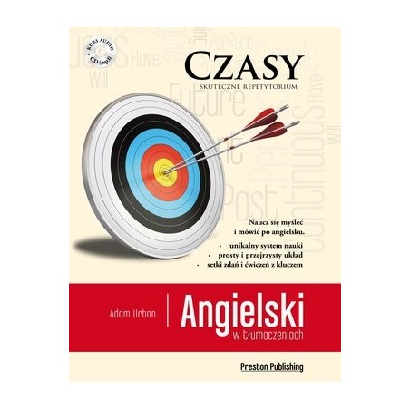 Dlaczego warto uczyć się z tą książką: innowacyjne podejście do nauki, dzięki któremu przełamiesz barierę mówienia i zaczniesz bezbłędnie posługiwać się językiem, przejrzysta i logiczna struktura książki, która pomoże w uporządkowaniu Twojej wiedzy, przystępne objaśnienia, które pozwolą Ci dokładnie zrozumieć zastosowanie angielskich czasów, setki przykładowych zdań i ćwiczeń, dzięki którym utrwalisz umiejętność poprawnego posługiwania się językiem angielskim, płyta CD (mp3) z kursem audio, który umożliwi Ci ćwiczenie języka w każdym miejscu i czasie.