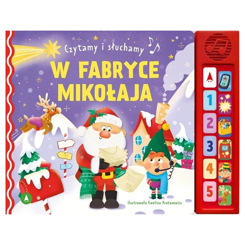 Telefon z fabryki zabawek przerywa Mikołajowi czytanie listów od dzieci. Okazuje się, że elfy mają problem z ważną maszyną… Czy bohaterom uda się go rozwiązać? Na pewno nie obejdzie się bez perypetii!Seria „Czytamy i Słuchamy” to ilustrowane opowiadania dla najmłodszych wzbogacone o panel dźwiękowy. Naciskanie guziczków z obrazkami pozwala poznać dźwięki wydawane przez postaci lub przedmioty. Przyciski z numerami stron uruchomią nagranie z opowieścią czytaną przez lektora.