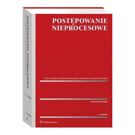 Jedyne kompleksowe opracowanie problematyki kodeksowego postępowania nieprocesowego. Książka umiejscawia założenia i instytucje postępowania nieprocesowego w kontekście historycznym, wyjaśnia zakres zastosowania w tym trybie przepisów o procesie, omawia istotę i charakter poszczególnych postępowań nieprocesowych oraz analizuje wybrane instytucje postępowania nieprocesowego zarówno z punktu widzenia teorii, jak i praktyki, przy uwzględnieniu reprezentatywnego i najnowszego orzecznictwa. W opracowaniu uwzględniono ponadto przykłady i schematy pozwalające lepiej zrozumieć i stosować analizowane przepisy w toku postępowań sądowych. ,W obecnej edycji książki uwzględniono nowelizacje dotyczące m.in.:wysłuchania dziecka,ustanawiania reprezentanta dziecka,postępowania w przedmiocie ustanowienia kuratora dla osoby niepełnosprawnej,zakresu kognicji (w odniesieniu do ustalania kręgu zainteresowanych) i zasad orzekania przez sąd spadku,składu sądu w postępowania w sprawach o ubezwłasnowolnienieszeregu szczegółowych rozwiązań procesowych mających odpowiednie zastosowanie w trybie nieprocesowym.W książce znaleźć można dodatkowo wzory pism dotyczące m.in.:zniesienia współwłasnościpodziału majątku wspólnegoprzysposobieniauznania za zmarłegoPonadto bieżące wydanie zostało uzupełnione przez dodatkowy rozdział dotyczący spraw z zakresu przeciwdziałania przemocy domowej, które to przepisy zostały wprowadzone ustawą z 30.04.2020 r. o zmianie ustawy – Kodeks postępowania cywilnego oraz niektórych innych ustaw (Dz.U. poz. 956) oraz omówiono zmiany wynikające z dostosowania przepisów Kodeksu postępowania cywilnego do rozporządzenia Rady (UE) nr 2019/1111 z 25.06.2019 r. w sprawie jurysdykcji, uznawania i wykonywania orzeczeń w sprawach małżeńskich i w sprawach dotyczących odpowiedzialności rodzicielskiej oraz w sprawie uprowadzenia dziecka za granicę. ,Książka jest przeznaczona dla prawników praktyków – sędziów, adwokatów, radców prawnych, notariuszy i komorników – pracowników naukowych oraz aplikantów zawodów prawniczych.