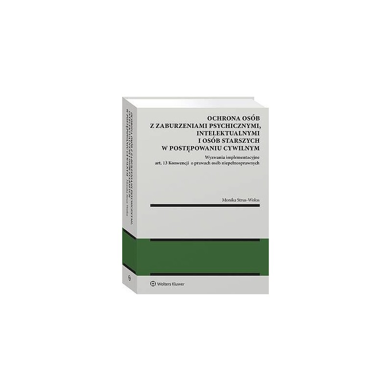 Książka stanowi nie tylko głos ekspercki, lecz także wyraz troski o godność, podmiotowość i realne uczestnictwo osób najsłabszych w postępowaniach cywilnych.Autorka z naukową precyzją i wyjątkową empatią bada, czy polskie postępowania cywilne – od ogólnych spraw cywilnych przez postępowania opiekuńcze do spraw osobowych – spełnia standardy dostępności wymiaru sprawiedliwości wynikające z art. 13 Konwencji o prawach osób niepełnosprawnych. Łączy dogłębną znajomość prawa z interdyscyplinarnym podejściem, sięgając do dorobku nauk medycznych, psychologii i socjologii.Książka zawiera wiele postulatów de lege ferenda. Wskazuje także na potrzebę reform w obszarach szkoleń i organizacji sądownictwa. Szczególną wartość książki stanowią praktyczne wskazówki dotyczące komunikacji z osobami z zaburzeniami poznawczymi i komunikacyjnymi oraz analiza barier, z jakimi osoby te mierzą się w kontakcie z sądem.Publikacja jest przeznaczona dla naukowców, sędziów, pełnomocników, legislatorów, przedstawicieli zawodów medycznych i społecznych – dla wszystkich, którzy chcą budować wymiar sprawiedliwości dostępny dla każdego. ,„Recenzowana monografia jest ujęciem bardzo obszernym i kompleksowym, mogącym pretendować do opracowania o charakterze systemowym. (…) Autorka będąca także znakomitym praktykiem omawia wszystkie instytucje nie tylko teoretycznie, ale zawsze z uwzględnieniem strony praktycznej. Przykładowo, niezwykle ważne dla czytelnika będą rozdziały poświęcone konkretnym instytucjom procesowym z punktu widzenia ich funkcjonowania wobec osób niepełnosprawnych lub starszych”.Z recenzji wydawniczej prof. Piotra Rylskiego