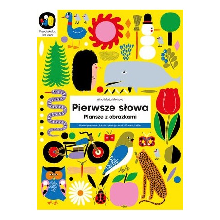 Książka zawiera 10 kolorowych plansz edukacyjnych, dzięki którym dziecko pozna terminy dotyczące kolorów, liczb, kształtów, pór roku, środków transportu i przyrody. Wszystkie plansze można wyrwać i powiesić na ścianie lub oglądać i czytać jak książkę. W zapamiętaniu nowych słów pomogą pytania aktywizujące, sformułowane w taki sposób, by wzmocnić skojarzenia słowne. Proste i wyraźne, a przy tym subtelne ilustracje stworzyła, fińska graficzka Aino-Maija Metsola.