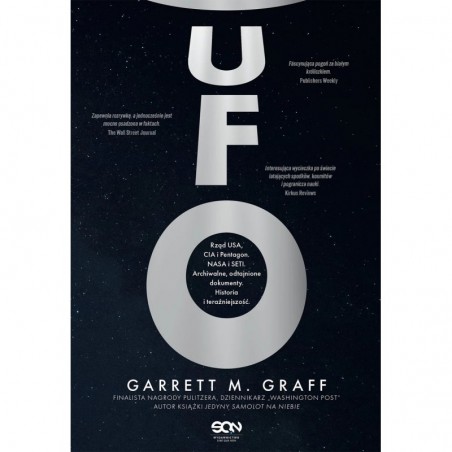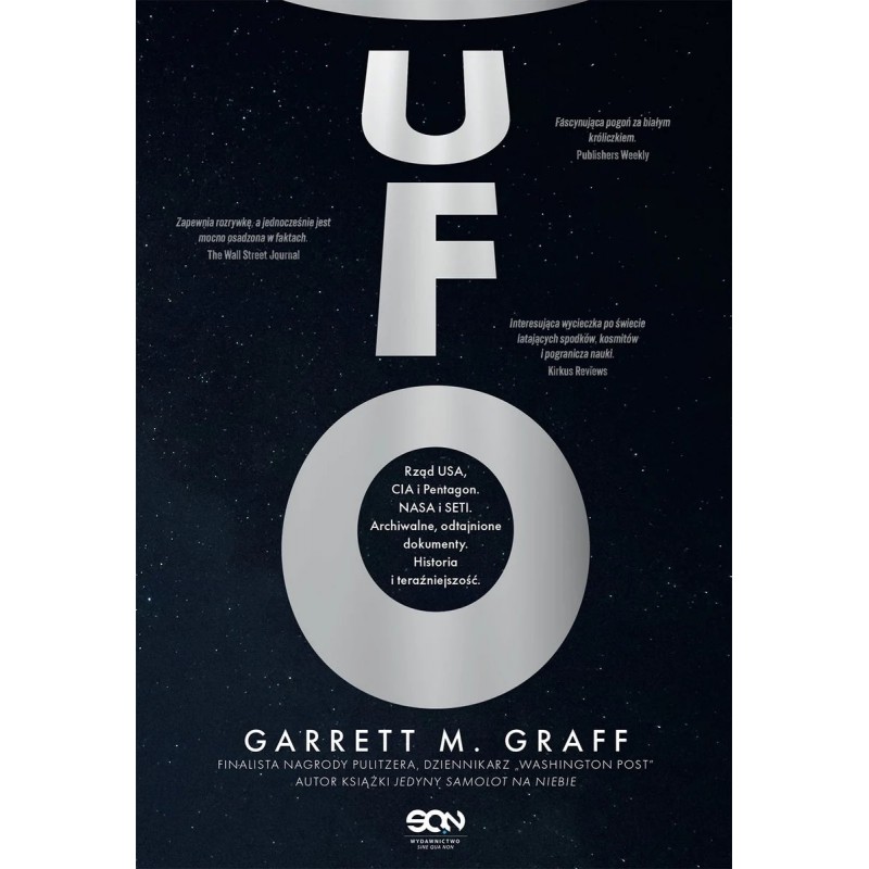 Od momentu, kiedy jako ludzkość spojrzeliśmy w niebo, zadawaliśmy sobie pytanie, czy życie na Ziemi jest jedynym, jakie istnieje. Pytanie to znalazło się w centrum naszych doświadczeń, napędzając debaty naukowe i odkrycia, kształtując wierzenia i skłaniając do rozważań egzystencjalnych nieograniczonych granicami państw ani czasem. Choć to jedno z ulubionych zagadnień naszej kultury, myśl o pozaziemskiej inteligencji została w dużej mierze sprowadzona do rangi fantazji i teorii spiskowych. To porywająca opowieść o nauce, zimnej wojnie, nazistowskich badaniach, niepokojach atomowych, tajnych samolotach szpiegowskich i wyścigu kosmicznym. UFO przedstawia prawdziwą historię polowania rządu USA na „niezidentyfikowane zjawiska powietrzne” tutaj na Ziemi, od Roswell po Rendlesham Forest, a także historię małej grupy myślących przyszłościowo naukowców – astronomów takich jak J. Allen Hynek, Frank Drake, Carl Sagan i Jill Tarter – którzy rozpoczęli poszukiwania pozaziemskiej inteligencji z dala od naszej planety. Opierając się na oryginalnych badaniach archiwalnych, odtajnionych dokumentach i wywiadach z wysokimi rangą urzędnikami wywiadu i wojska, Garrett M. Graff śledzi nasze długotrwałe usiłowania, by odpowiedzieć na jedno z najgłębszych i najpopularniejszych pytań wszech czasów: czy jesteśmy sami? Garrett M. Graff to uznany historyk, finalista Nagrody Pulitzera, dziennikarz „The Washington Post”, a także autor kilku książek, w tym wydanego przez Wydawnictwo SQN reportażu o zamachach z 11 września Jedyny samolot na niebie. Zapewnia rozrywkę, a jednocześnie jest mocno osadzona w faktach. The Wall Street Journal Interesująca wycieczka po świecie latających spodków, kosmitów i pogranicza nauki. Kirkus Reviews