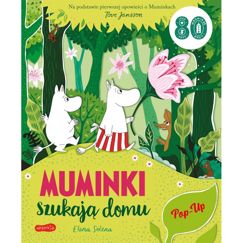 Muminek i jego Mamusia szukają domu, który porwała powódź. Dołącz do nich i wybierz się na wędrówkę przez gęsty las i zachwycający zaczarowany ogród. Uśmiechnij się do przestraszonego Ryjka, którego wędrowcy spotkają po drodze. Udaj się w rejs po wzburzonym morzu, po którym żeglują Hatifnatowie, i unieś się w niebo na grzbiecie Marabuta. Przekonaj się, czy Muminkowi i jego mamie uda się wreszcie znaleźć dom i spotkać się z Tatusiem. Na kolejnych stronach tej przestrzennej książki czekają na ciebie bajeczne krajobrazy i trójwymiarowe sceny, które zachwycą nie tylko najmłodszych. Przepiękne, imponujące, a przy tym solidnie wykonane elementy pop-up sprawiają, że świat Muminków zyskuje zupełnie nowy wymiar, a opowieść nabiera życia i porywa czytelnika bez reszty. Historia zawarta w tej książce to zinterpretowana na nowo pierwsza opowieść Tove Jansson o Muminkach. Tekst został napisany prostym, zrozumiałym dla kilkulatka i przyjaznym językiem, a duże litery ułatwiają próby samodzielnego czytania. Książka będzie wspaniałym prezentem dla maluchów, które zaczynają dopiero swą przygodę z Muminkami. Sprawi też frajdę starszym fanom Tove Jansson, szczególnie tym, którzy wychowali się na jej opowieściach i lubią wracać do nich po latach.