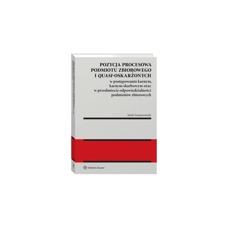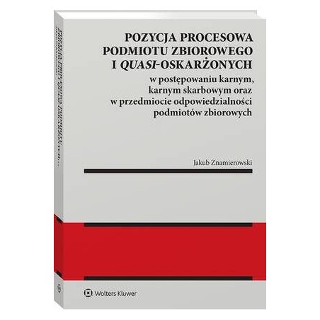 &nbsp,Publikacja stanowi kompleksowe opracowanie porządkujące najnowszy stan wiedzy na temat pozycji procesowej podmiotu zbiorowego i quasi-oskarżonych, czyli osób odpowiadających w związku z przestępstwem lub przestępstwem skarbowym oskarżonego. Autor przeanalizował czynniki determinujące zakres gwarancji procesowych tych podmiotów &nbsp,oraz zbadał, jakie gwarancje procesowe przysługują im na gruncie Konstytucji RP oraz najważniejszych aktów prawa międzynarodowego i prawa UE.&nbsp,W publikacji przedstawiono propozycję konstytucyjnego oraz prawnomiędzynarodowego i unijnego standardu gwarancji procesowych tych podmiotów, jak również przeanalizowano i porównano ich status procesowy na poziomie regulacji ustawowych – Kodeksu postępowania karnego, Kodeksu karnego skarbowego i ustawy o odpowiedzialności podmiotów zbiorowych za czyny zabronione pod groźbą kary (m.in. kwestie prawa do obrony, domniemania niewinności oraz reprezentacji w postępowaniu).&nbsp,Monografia zawiera liczne wskazówki interpretacyjne oraz postulaty dotyczące potrzebnych zmian legislacyjnych w zakresie, w jakim kształtują one pozycję procesową tytułowych podmiotów – zarówno w odniesieniu do kwestii modelowych, jak i szczegółowych rozwiązań normatywnych.&nbsp,&nbsp,Książka jest przeznaczona dla adwokatów, radców prawnych, prokuratorów, sędziów oraz aplikantów tych zawodów prawniczych. Może zainteresować również naukowców zajmujących się prawem karnym i procedurą karną oraz legislatorów.