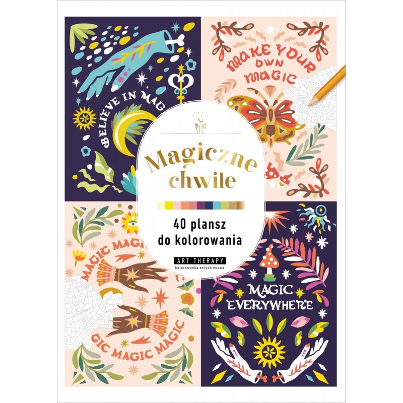 Od zarania dziejów człowiek wsłuchiwał się w rytm świata i wpatrywał w gwiazdy błyszczące na niebie. Widział w nich nie tylko piękno, lecz także znaki, które prowadziły go przez życie i pomagały pojąć zagadkę istnienia. Energia świata nieustannie krąży wokół nas. Pulsuje na ziemi, w drzewach, w kamieniach, a także w nas samych. Łączy to, co dostępne zmysłom, z tym, co niewidzialne - świat materialny z duchowym. Jeśli i ciebie interesują magiczne wizerunki, przygotuj flamastry lub kredki, usiądź wygodnie i koloruj po numerach wybrane plansze. Na końcu książki znajdziesz barwne wersje wszystkich ilustracji.