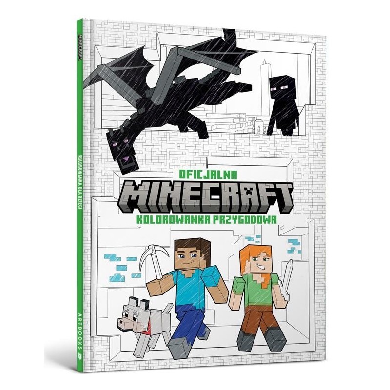 ",Oficjalna kolorowanka przygodowa Minecraft", to dziesiątki niepowtarzalnych obrazków z: . biomami i wioskami . ulubione postaciami i mobami, w tym Steve',em, Alex, creeperami i Smokiem Kresu, . blokami, bronią i zbrojami . legendarnymi budowlami, . i wiele, wiele więcej! Twórz, odkrywaj i... koloruj z KOLOROWANKĄ PRZYGODOWĄ MINECRAFT A teraz POKOLORUJ coś niesamowitego! OFICJALNĄ Dzięki tej w stu procentach oficjalnej, pełnej akcji kolorowance wyruszysz w barwną podróż przez ponad czterdzieści epickich ilustracji inspirowanych rozległym, niesamowitym światem ",Minecrafta",. Nie musisz tworzyć portalu do Netheru! Po prostu chwyć kredki, pisaki lub farby i zacznij tworzyć swoje własne dzieła minecraftowej sztuki (kilof wyjątkowo nie będzie konieczny). Dzięki Oficjalnej kolorowance przygodowej Minecraft możesz nadać indywidualny sznyt kultowym postaciom, miejscom i przedmiotom. Niech żyje kreatywność!