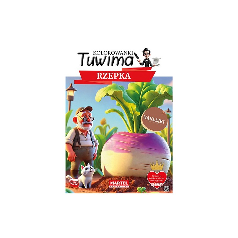 Dołącz do wesołej drużyny bohaterów i pomóż im wyciągnąć upartą rzepkę! Książeczka oparta na znanym wierszu Juliana Tuwima to 16 stron pełnych humorystycznych ilustracji do pokolorowania. Zestaw zawiera także naklejki, które dodadzą Twoim dziełom oryginalności i sprawią, że wspólne chwile z książeczką będą jeszcze bardziej wyjątkowe.