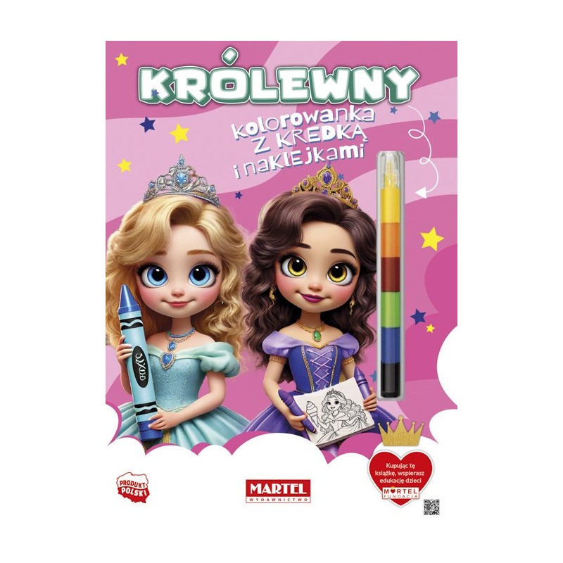 „Królewny. Kolorowanka z kredką i naklejkami” to 16 stron pełnych pięknych ilustracji gotowych do przyozdobienia.