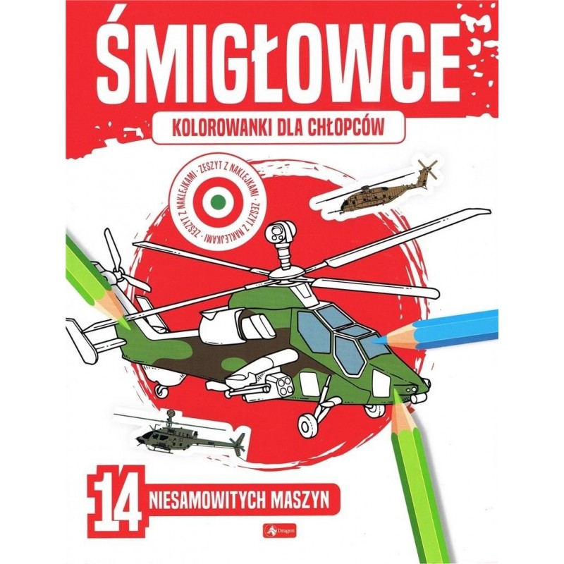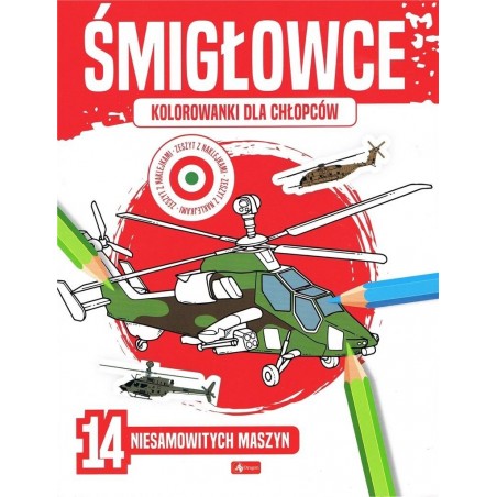 KOLOROWY LOT WOJSKOWYMI ŚMIGŁOWCAMI Oto nie lada gratka dla chłopców - czternaście kolorowanek z wojskowymi śmigłowcami.