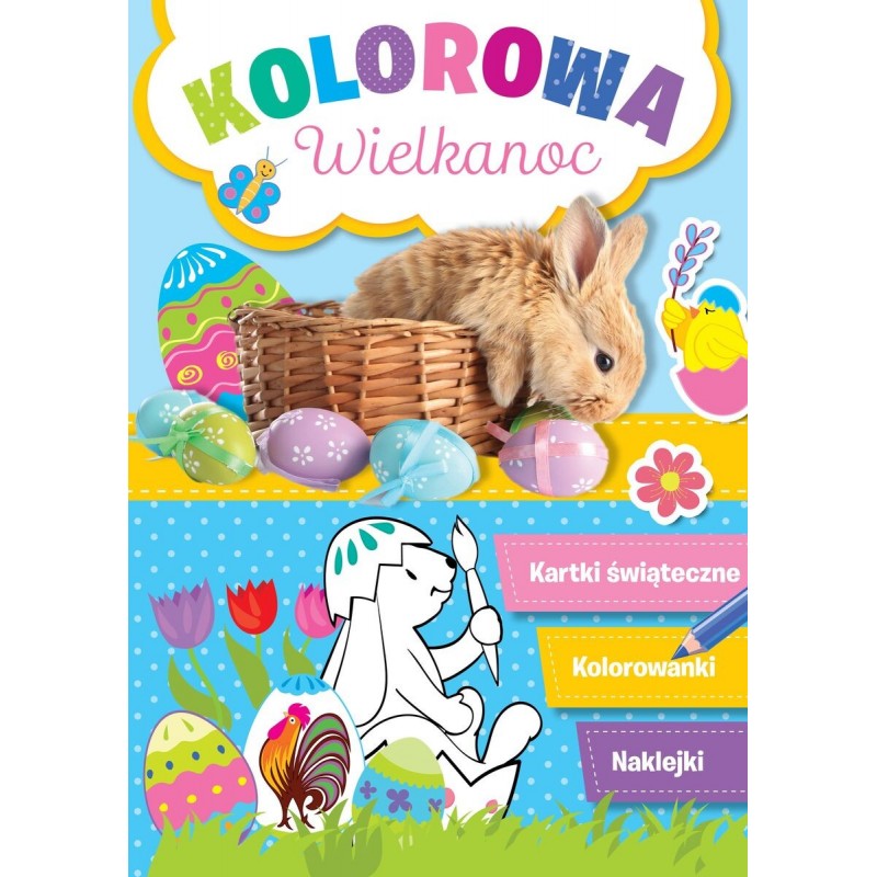 Sięgając po tę książeczkę, rozbudzisz u swojego dziecka artystyczne pasje. Każdy przedszkolak z zapałem przystąpi do kolorowania pisanek i wielkanocnych obrazków, a także dekorowania kart z życzeniami, które będzie mógł wyciąć i podarować najbliższym. Znajdzie tu też urocze naklejki do uzupełnienia stron książeczki oraz mnóstwo ciekawych informacji dotyczących wielkanocnych zwyczajów.