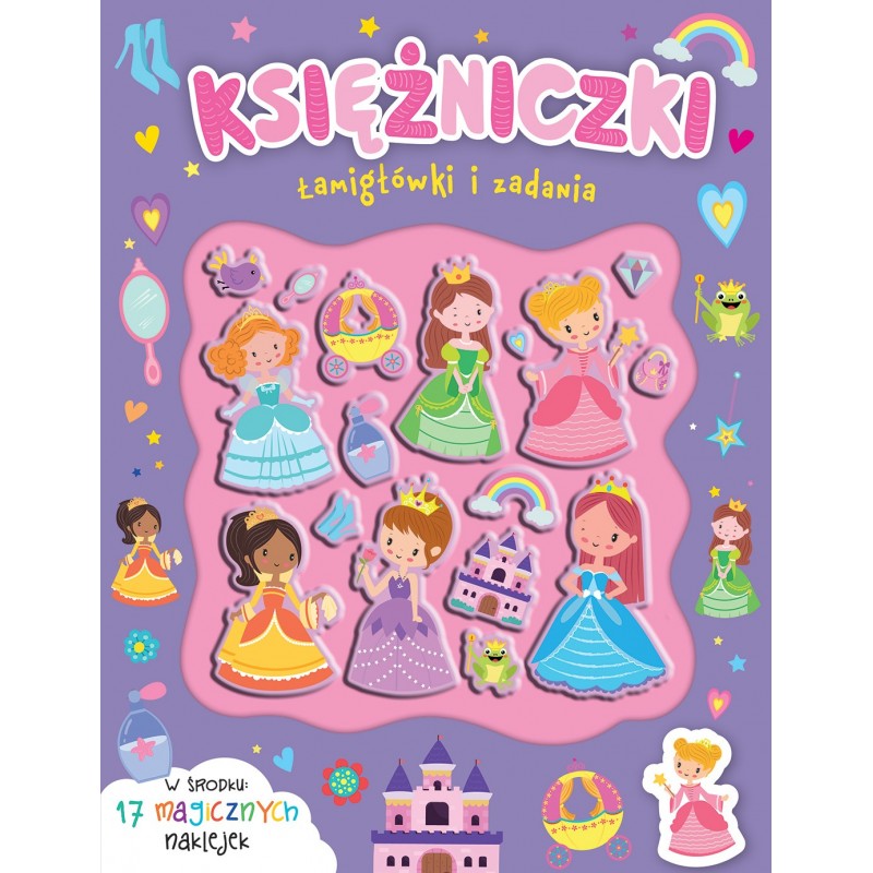Urocze księżniczki zapraszają do fantastycznej zabawy!Pokonaj z nimi labirynty, znajdź różnice, rozwiąż łamigłówki i równania, zgaduj, rysuj i koloruj. Baw się wypukłymi naklejkami i użyj ich do ozdabiania stron!