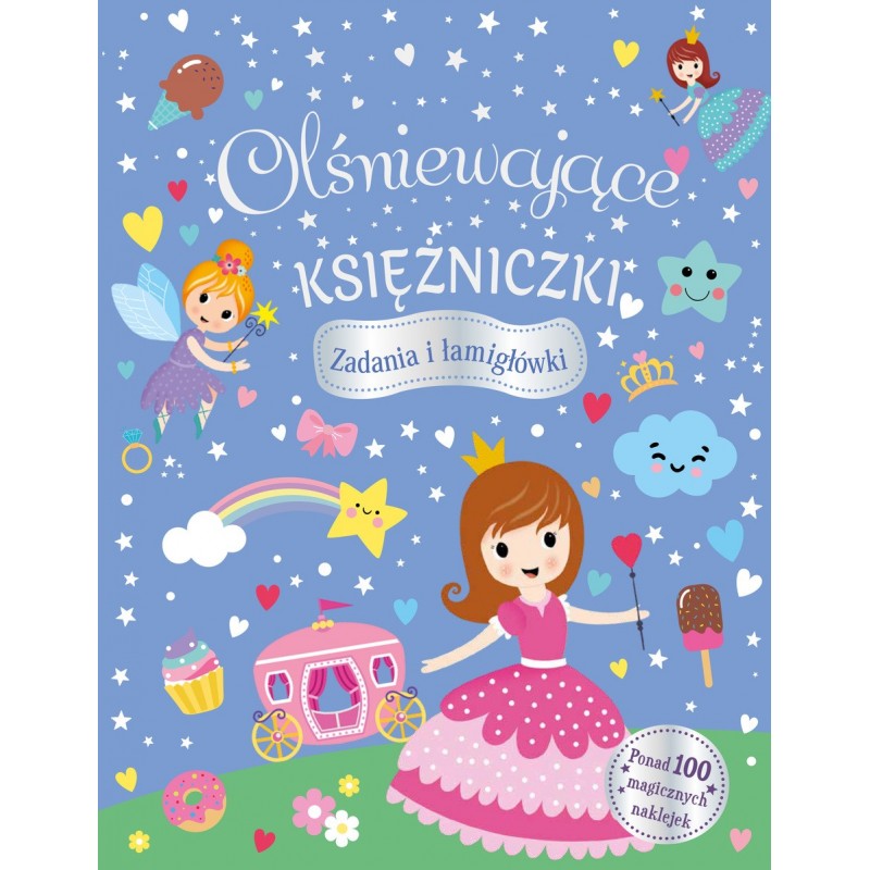 Poznaj wspaniałe księżniczki i ich przyjaciół. Rozwiąż łamigłówki, rysuj i koloruj. A potem ozdób strony tej książki kolorowymi i błyszczącymi naklejkami. Przed tobą wiele wyzwań i wspaniała zabawa!