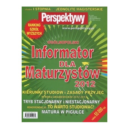 Informator dla Maturzystów przygotowany przez Perspektywy to najpopularniejsze w Polsce (60 tys. egz. udokumentowanego nakładu) to bezcenne źródło wiedzy o studiach pierwszego stopnia oraz jednolitych magisterskich. Zawiera informacje o kierunkach studiów i zasadach przyjęć na uczelniach w Polsce, informacje pomagające w przygotowaniu do matury, wyborze ścieżki edukacyjnej oraz świadomym wyborze studiów licencjackich i inżynierskich.
