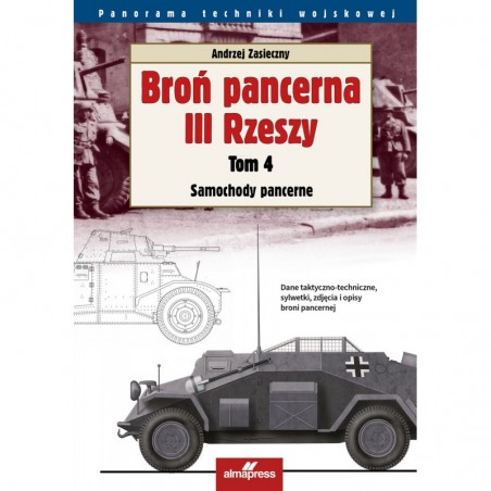 Książka zawiera opisy 20 typów i wersji samochodów pancernych III Rzeszy używanych podczas II wojny światowej. Przedstawiono historię rozwoju pojazdów, wszystkie wersje i odmiany, a także zastosowanie bojowe. Obszernie opisano budowę wozów, akcentując nowatorskie rozwiązania techniczne. Opis każdego pojazdu ilustrowany jest barwną sylwetką boczną, jednym lub kilkoma rysunkami w czterech rzutach oraz zdjęciami. We wstępie Autor wyjaśnia, czym różniły się kolejne generacje niemieckich samochodów pancernych. Książka jest czwartym tomem cyklu leksykonów o broni pancernej III Rzeszy.