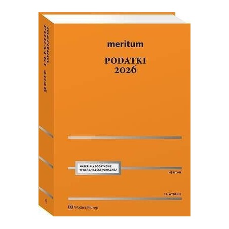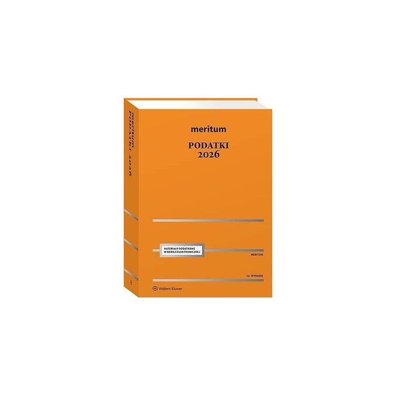 Książka w przystępny sposób omawia wszystkie najważniejsze obszary prawa podatkowego – od zobowiązań podatkowych, przez podatki dochodowe (PIT i CIT), aż po VAT, podatek od nieruchomości, spadków i darowizn, czynności cywilnoprawnych oraz opłatę skarbową. Dodatkowo zawiera szczegółowe rozdziały nt. kontroli podatkowych, czynności sprawdzających i raportowania schematów podatkowych (MDR). W książce czytelnik znajdzie kompleksowe ujęcie tematyki podatkowej w jednym miejscu, jasne wyjaśnienia zasad powstawania, wygasania, ulg i zabezpieczeń zobowiązań, praktyczne omówienie obowiązujących podatków, itp.Nowości 2026 – uwzględnione w publikacjiAutorzy uwzględnili zapowiadane i obowiązujące od 2026 r. zmiany w polskim systemie podatkowym, w tym m.in.:Krajowy System e-Faktur (KSeF) – obowiązkowe wystawianie i odbiór faktur elektronicznych od 1 lutego (dla największych podatników) i 1 kwietnia 2026 r.Od 1 lutego 2026 r. wszyscy podatnicy będą odbierali faktury wystawione w KSeF przez tzw. duże podmiotyFiskus obiecuje – do końca 2026 r. – łagodne podejście do ew. błędów związanych z fakturowaniem w KSeFZniesienie not korygujących faktury w związku z KSeF – błędy będą podlegały korekcie poprzez wystawienie za pośrednictwem KSeF faktury korygującejSkrócenie terminu zwrotu VAT z 60 do 40 dni oraz nowe zasady datowania dokumentówZmiana zasad rozliczania VAT od niezwróconych opakowań zwrotnych objętych systemem kaucyjnymPodwyższenie limitu zwolnienia podmiotowego z VAT – ze 200 tys. zł do 240 tys. zł od 1 stycznia 2026 r., co ułatwia rozliczenia jednoosobowych działalności gospodarczychZmiany limitów amortyzacji i kosztów leasingu samochodów – nowe progi: 225 tys. zł dla pojazdów elektrycznych i wodorowych, 150 tys. zł (do 50 g CO2/km), 100 tys. złNowe e-deklaracje JPK_CIT i raportowanie podatkowe – rozszerzenie obowiązku przesyłania JPK_CIT od 1 stycznia 2026 r. dla kolejnych grup podatników.Zmiany w składce zdrowotnej – koniec możliwości naliczania od 75% podstawy, teraz od 100%, co wpływa istotnie na wzrost kosztów prowadzenia działalności.W CIT - opodatkowanie dochodów wspólników z likwidacji spółki osobowej, jeżeli likwidacja ta nastąpi przed upływem 3 lat po przekształceniuW PIT ,- ,ograniczenie ulgi mieszkaniowej (na zakup tylko jednego mieszkania lub gruntu, jeżeli podatnik nie ma innej nieruchomości)Podatek od nieruchomości – wzrost stawek maksymalnychW podatku od spadków i darowizn – zmiana kwoty wolnej od podatku oraz ważna zmiana dotycząca możliwości przywrócenia terminu zgłoszenia nabycia spadku dla członków najbliższej rodziny (od którego zależy zwolnienie z podatku od spadków i darowizn)W Ordynacji podatkowej - fundamentalna, uregulowana ustawowo, zmiana w podejściu organów podatkowych do podatnika, o której mówiło się od lat, ale wprowadzono dopiero teraz – swoista zasada domniemania niewinności (art. 122 § 2 o.p.: „W postępowaniu podatkowym wszczętym z urzędu niedające się usunąć wątpliwości co do stanu faktycznego rozstrzyga się na korzyść strony”). Zasada ta zaczęła obowiązywać od 4.11.2025 r., ale ma zastosowanie również do postępowań (kontroli) wciąż trwających, a wszczętych do 6 miesięcy przed dniem wejścia w życie regulacjiPoradnik Meritum Podatki został stworzony z myślą o księgowych, doradcach podatkowych i przedsiębiorcach, którzy chcą mieć pewność, że działają zgodnie z obowiązującymi regulacjami.„Meritum” to szybka, jasno podana informacja z propozycją rozwiązania problemu, książka narzędzie, która podpowie jak rozwiązać problem, jakie wzory dokumentów zastosować, zobrazuje zagadnienie przykładem.Zawiera:omówienia istotnych zagadnień (w tym wybór reprezentatywnego orzecznictwa z podaniem tezy wyroku, wskazanie podstawy prawnej do omawianego zagadnienia oraz wykazu najistotniejszych pozycji literatury),wyraźnie wyodrębnione przykłady,sugerowane rozwiązania możliwych problemów.Układ treści umożliwiający szybkie odszukanie informacji:rozbudowany system wewnętrznych odesłań,szcz