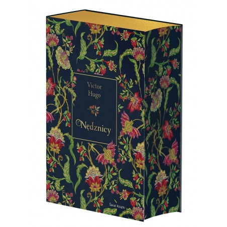 Kolekcjonerska edycja z barwionymi kartkami. Powieść w planach Wiktora Hugo miała być panoramicznym obrazem całego społeczeństwa francuskiego XIX wieku oraz wykładnią poglądów autora na kwestie porządku społecznego, walki z nędzą i wykluczeniem. Na kartach Nędzników, poprzez główne wątki fabularne oraz liczne dygresje, Hugo prezentuje swój program, oparty na wierze w możliwość pozytywnej przemiany każdego człowieka oraz w ciągły, obejmujący wszystkie dziedziny życia postęp. Praca nad tym epickim dziełem trwała blisko dwadzieścia lat. Powieść Nędznicy łączy elementy powieści realistycznej z silnymi elementami romantycznymi.