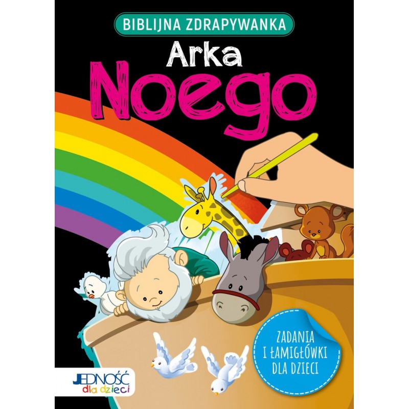 Dowiedz się więcej o Arce Noego! Rozwiązuj kolejno zadania, zdrapując wierzchnią warstwę farby za pomocą patyczka dołączonego do książki. Baw się dobrze!