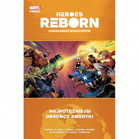 Wyobraźcie sobie świat bez Avengers. Tony Stark nigdy nie zbudował zbroi Iron Mana. Thor jest ateistą, który gardzi magicznymi młotami. Wakanda uchodzi za mit. Kapitana Ameryki nie odnaleziono śpiącego w lodzie… Zamiast nich naszego świata strzeże Amerykański Szwadron Sztandarowy, do którego należą: Hyperion, Blur, Doktor Spektrum, Power Princess i Nighthawk. Tylko dlaczego Blade, łowca wampirów, jako jedyny pamięta, że ten świat nie zawsze był taki jak dziś? Czy uda mu się odnaleźć innych nie-Avengers i przywrócić go do poprzedniego stanu? Scenariusz tego komiksu, przenoszącego czytelników do alternatywnej rzeczywistości Marvela i rozwijającego wątki z serii „Avengers” (Marvel Fresh), napisał Jason Aaron, autor takich serii jak: „Conan Barbarzyńca”, „Punisher Max” i „Thor Gromowładny”. Rysunki stworzyli: Erica D’Urso, Dale Keown, Aaron Kuder, R.M. Guéra, Ed McGuinness, James Stokoe oraz Federico Vicentini. Album zawiera materiały opublikowane pierwotnie w zeszytach „Heroes Reborn” #1–7 i „Heroes Return” #1.