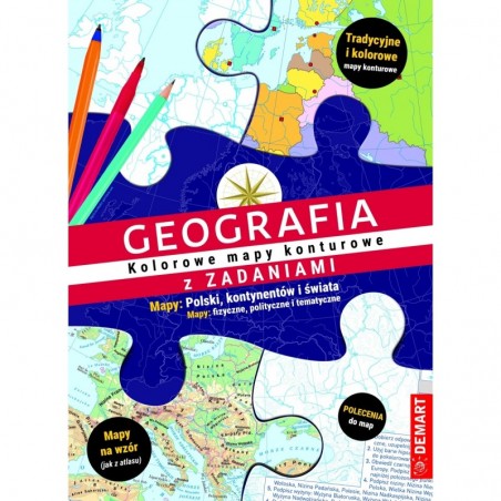 Geografia. Kolorowe mapy konturowe z zadaniami