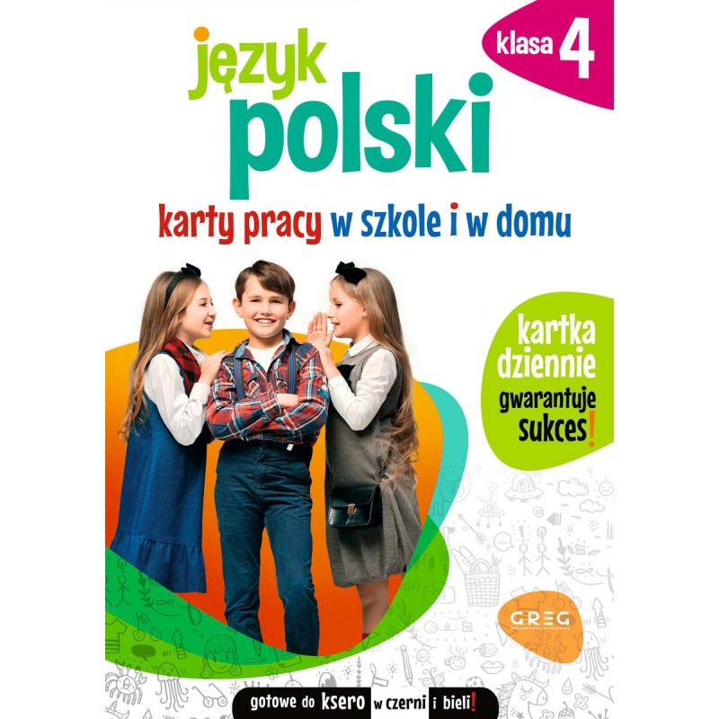 Język polski. Karty pracy w szkole i w domu - klasa 4 to pierwsza z trzech części zestawu Kart pracy dla klasy czwartej, który obejmuje także język angielski i matematykę. Publikacja została przygotowana przez doświadczonych nauczycieli i jest w pełni zgodna z aktualną podstawą programową, co gwarantuje jej rzeczywistą przydatność w szkolnej praktyce. Zadania w książce obejmują wszystkie działy języka polskiego, jakie pojawiają się w czwartej klasie - fonetykę, fleksję, składnię, ortografię i interpunkcję. Zostały one też opatrzone krótkimi przypomnieniami teoretycznymi i wskazówkami ułatwiającymi ich rozwiązanie, które bardzo łatwo jest zapamiętać. Dział dotyczący form pisemnych wymaganych w programie nauczania, takich jak list, życzenia, opowiadanie, dialog, opis postaci itp., pozwala poćwiczyć sprawność w tworzeniu ich i posługiwaniu się nimi. Ogromnym atutem są też ćwiczenia dotyczące lektur obowiązkowych, które umożliwiają sprawdzenie i utrwalenie zapamiętanych informacji. Książka jest niezwykle dopracowana graficznie, charakteryzuje się żywą, przyjemną dla oka kolorystyką i estetyczną grafiką, dzięki czemu jej wygląd zachęca do pracy. Różnorodność typów ćwiczeń sprzyja utrzymaniu zainteresowania ucznia, a ich stopniowo rosnący poziom trudności motywuje do pracy i buduje wiarę we własne możliwości. Układ ćwiczeń zaprojektowano tak, by systematyczne rozwiązywanie zaledwie jednej karty codziennie gwarantowało opanowanie całego wymaganego materiału z języka polskiego. Każdą kartę można łatwo wyrwać z książki dzięki perforacji i bez problemu skserować - dzięki odpowiedniemu przygotowaniu graficznemu czarno-białe kopie nie tracą na czytelności. W serii Kart pracy znajdują się też publikacje dla uczniów klas 1-3, obejmujące nauczanie zintegrowane, matematykę i język angielski.