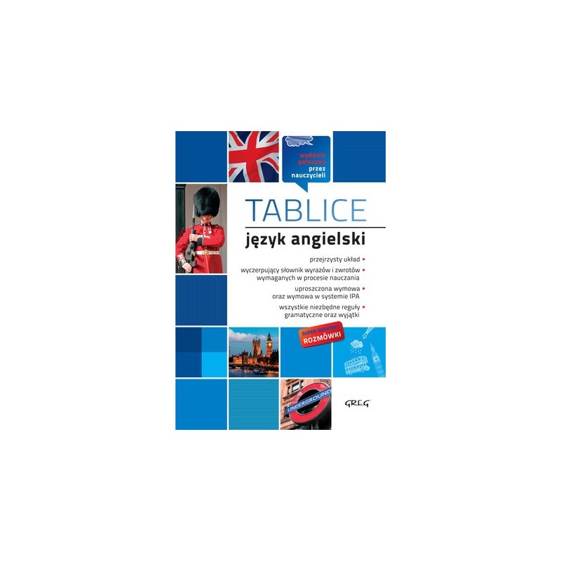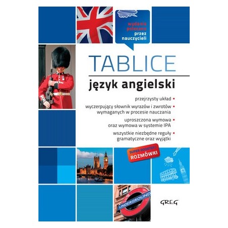 Tablice - j. angielski to idealna pozycja do szybkiej nauki języka angielskiego. Zawiera najważniejsze zasady gramatyczne - zaprezentowane w formie przejrzystych i przystępnych tabel i zestawień. Ten sposób przedstawienia materiału pomaga w nauce oraz pozwala na szybkie przypomnienie każdego zagadnienia. W książce znajduje się wygodny słowniczek najważniejszych słówek, pogrupowanych tematycznie. Książka zawiera przydatny dodatek - rozmówki angielsko-polskie, które szczególnie przydadzą się podczas zagranicznych podróży oraz przy ćwiczeniach konwersacji. To skondensowana wiedza przydatna w każdej sytuacji: podczas zakupów, zwiedzania, w urzędzie czy rozmowie z pracodawcą. Przejrzysty układ pozwala błyskawicznie znaleźć niezbędne zwroty. Wszystkie słówka i wyrażenia posiadają fonetyczną wymowę.