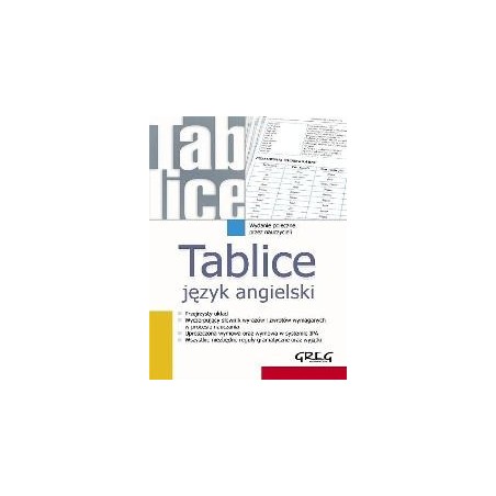 W Tablicach - język angielski został zastosowany przejrzysty podział na gramatykę i słownictwo niezbędne do wypracowań zadawanych przez nauczycieli. To jednak nie tylko podstawowe reguły gramatyki, to także wyjątki i przykłady, tak pomocne podczas nauki. Część dotyczącą słownictwa wzbogaciliśmy wymową zapisaną nie tylko w stosowanym w słownikach systemie IPA, ale także w systemie uproszczonym, zrozumiałym również dla początkujących. Spis treści &nbsp, GRAMATYKA Rzeczownik - rodzaj Rzeczownik - forma dzierżawcza Rzeczownik - liczba mnoga Słowotwórstwo Wielka i mała litera Przedimki Zaimki osobowe Zaimki wskazujące Zaimki pytające Zaimki nieokreślone Zaimki ilościowe Zaimki rozdzielcze Przymiotniki i przysłówki Czasowniki Czasowniki złożone Czasowniki nieregularne Czasy - budowa Czasy - zastosowanie Czasowniki modalne Okres warunkowy Zastosowanie bezokoliczników i konstrukcji gerundialnych Strona bierna Mowa zależna Przyimki Spójniki Liczebniki &nbsp, PODSTAWOWE SŁOWNICTWO Człowiek Dom Szkoła Praca Życie rodzinne i towarzyskie Żywienie Zakupy i usługi Podróżowanie i turystyka Kultura Sport Zdrowie Nauka, technika Przyroda Państwo i społeczeństwo Nazwy geograficzne oraz utworzone od nich przymiotniki i nazwy mieszkańców Podstawowe zwroty False friends Język angielski w Wielkiej Brytanii i Stanach Zjednoczonych