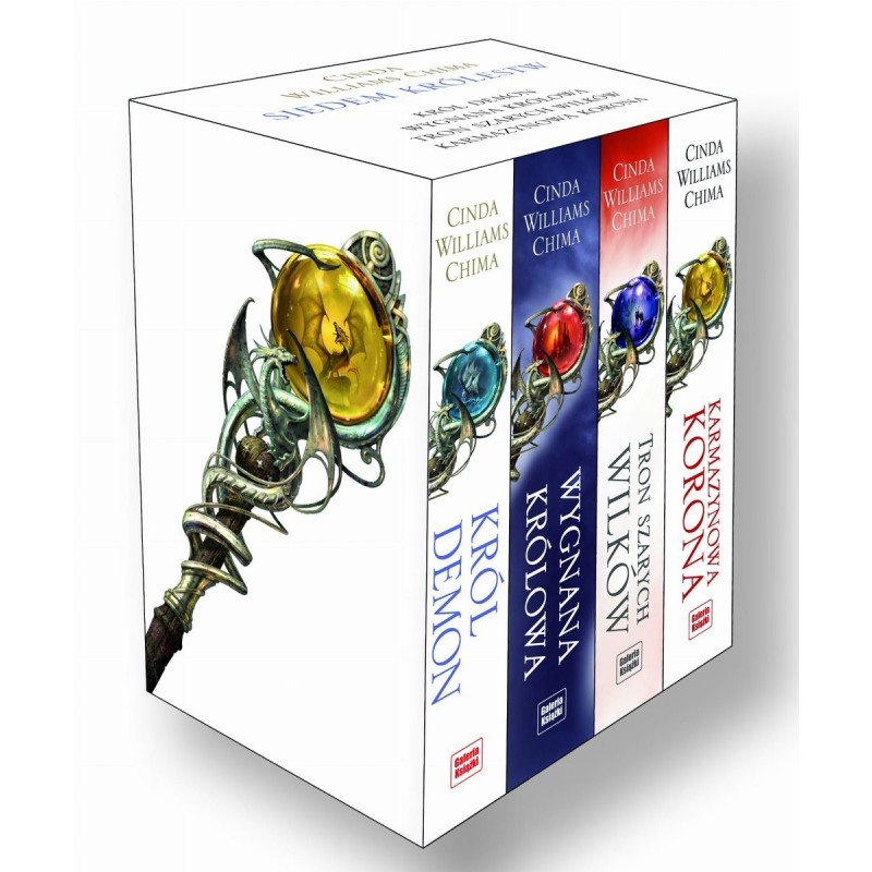 Pakiet zawierający 4 tomy bestsellerowej serii `Siedem Królestw` autorstwa Cindy Williams Chimy, w specjalnie zaprojektowanym etui: Król Demon, Wygnana królowa, Tron Szarych Wilków, Karmazynowa Korona.