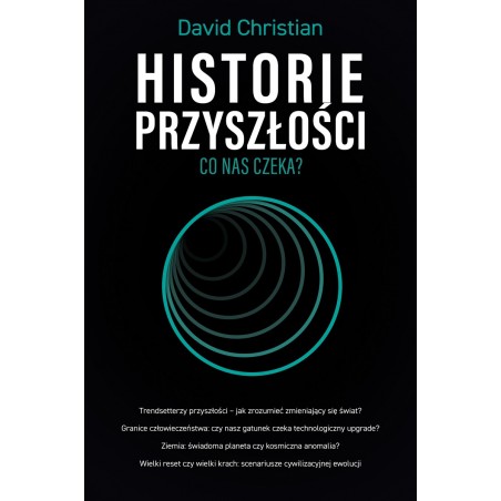 David Christian, znany jako pionier nowej dyscypliny naukowej zwanej Big History, która zajmuje się kompleksowym badaniem przeszłości, tym razem kieruje swoje analityczne oko do przodu. Autor zasięga opinii teologów, filozofów, przedstawicieli nauk ścisłych, statystyków i uczonych z wielu krajów i czasów, dociekając, w jaki sposób przygotowujemy się na niepewną przyszłość, w tym przyszłość ewolucji człowieka, sztucznej inteligencji, podróży międzygwiezdnych i nie tylko. Ta książka to swego rodzaju przewodnik użytkownika po przyszłości. Wszyscy potrzebujemy takiego przewodnika, ponieważ przyszłość to miejsce, w którym spędzimy resztę naszego życia.