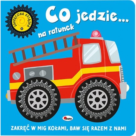 Książeczka z ruchomymi KÓŁKAMI – maluszek może nimi kręcić. Wspiera wszechstronny rozwój dziecka – pobudza ZMYSŁY WZROKU I DOTYKU, rozwija WYOBRAŹNIĘ PRZESTRZENNĄ. Prezentuje POJAZDY ratunkowe. Zawiera proste i krótkie RYMOWANKI. Książka zapoznaje małych czytelników z POJAZDAMI ratunkowymi. Dzieci znajdą w niej proste i krótkie RYMOWANKI o radiowozie czy ambulansie. Wyróżnikiem publikacji są kręcące się KÓŁKA, dzięki którym dziecko może AKTYWNIE uczestniczyć w czytaniu. Piękne, kolorowe ILUSTRACJE pomogą przenieść się na w świat pojazdów ratunkowych.
