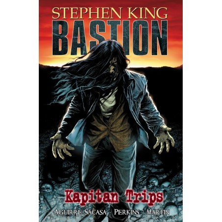 WIELKA GRATKA DLA FANÓW KRÓLA HORRORU! PIERWSZE POLSKIE WYDANIE NIGDY WCZEŚNIEJ U NAS NIEPUBLIKOWANEJ KOMIKSOWEJ ADAPTACJI BESTSELLEROWEJ POSTAPOKALIPTYCZNEJ POWIEŚCI STEPHENA KINGA „BASTION”! JEDNA Z NAJBARDZIEJ UDANYCH TRAWESTACJI W HISTORII KOMIKSU – NARRACYJNIE ŚWIEŻA I NOWATORSKA, A JEDNOCZEŚNIE BARDZO WIERNA ORYGINAŁOWI. OPOWIEŚĆ OSNUTA WOKÓŁ NASZYCH NAJWIĘKSZYCH LĘKÓW: ŻE ZAGŁADA CZAI SIĘ TUŻ ZA ROGIEM I ŻE TO LUDZKOŚĆ, OBSESYJNIE SKUPIONA NA SWOIM BEZPIECZEŃSTWIE, SAMA JĄ SOBIE ZAFUNDUJE. „Bastion” to klasyczna opowieść o dobru i złu – apokaliptyczna wizja walki człowieka o ocalenie życia przed śmiertelnie groźną pandemią. Kiedy więc Kapitan Trips obejmuje świat we władanie, niedobitkom ludzkości nie pozostaje nic innego, jak wznieść solidny bastion i stawić mu czoła w ostatnim beznadziejnym starciu... Pierwszy rozdział tej historii, „Kapitan Trips”, nawiązuje zarówno do tytułu pierwszej z trzech części powieści Kinga, jak i potocznego terminu, jakim w książce określa się wirusową broń biologiczną, która uśmierciła znaczą część ludzkości. W Ameryce, w której umarło 99% mieszkańców, ci, którzy przeżyli, podróżują przez spustoszony kraj pełen trupów, by ostatecznie utworzyć dwie przeciwstawne sobie grupy, na których czele staną tajemnicze postacie o wyraźnie nadludzkich mocach. Serię komiksów „Bastion”, opartą na powieści Stephena Kinga z 1978 roku o tym samym tytule, publikowało oryginalnie w latach 2008–2012 wydawnictwo Marvel Comics. Za scenariusz odpowiedzialny jest Roberto Aguirre-Sacasa, za rysunki Mike Perkins, a za kolory Laura Martin. Stephen King aktywnie uczestniczył w powstającym projekcie, pełniąc funkcję dyrektora kreatywnego i wykonawczego całości. Trzydzieści jeden numerów komiksu, zawartych w sześciu tomach, ekscytująco uzupełniło fabułę jego powieści. Znajdujące się na końcu każdego tomu dodatki, zawierające szkice i nieuwzględnione w wersji ostatecznej materiały, pozwolą czytelnikom zajrzeć do komiksowej kuchni twórców serii. Przygoda, romans, przepowiednia, alegoria, satyra, fantastyka, realizm – wszystko to określa i przeplata się w tej apokaliptycznej opowieści. „The New York Times Book Review” Kawał świetnej i bardzo przekonującej klasycznej komiksowej opowieści grozy! „SFX Magazine”