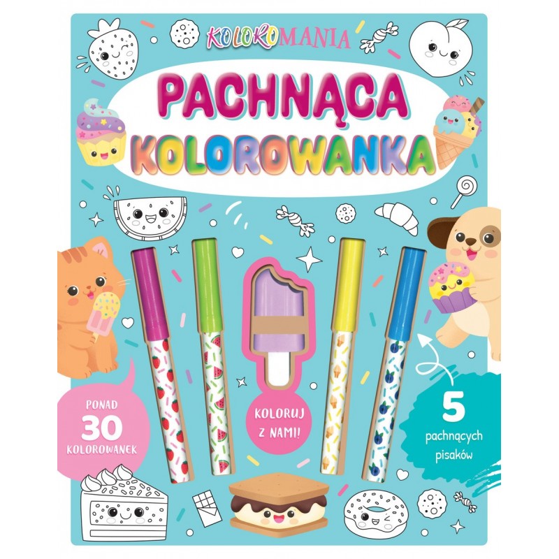Zajrzyj do naszej kolorowanki! Znajdziesz w niej ponad 30 stron do pokolorowania, a do tego pachnące pisaki. Sztywna okładka posłuży ci jako podkładka do pracy, a pokolorowane obrazki będą piękną ozdobą twojego pokoju.