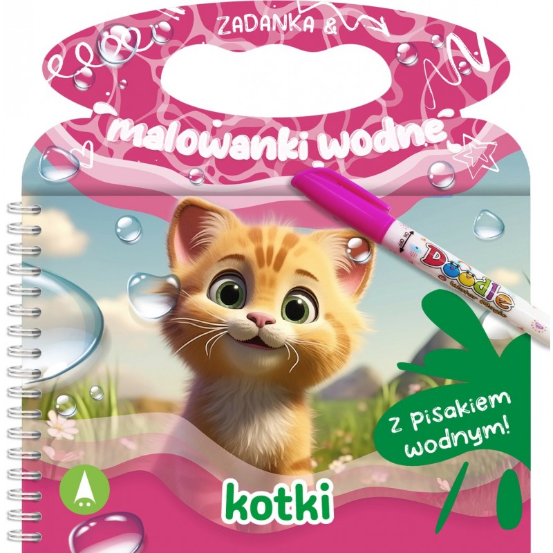 Zestaw z serii „Zadanka &amp, Malowanki Wodne” zawiera zeszyt z zadankami i malowankami powleczonymi specjalną powłoką, która zmienia swoje właściwości pod wpływem wilgoci, oraz pisak ze zbiorniczkiem na wodę. Malowanki wielorazowego użytku – ponownie tracą kolor po wyschnięciu. Elementy zestawu nie podlegają sprzedaży osobno.