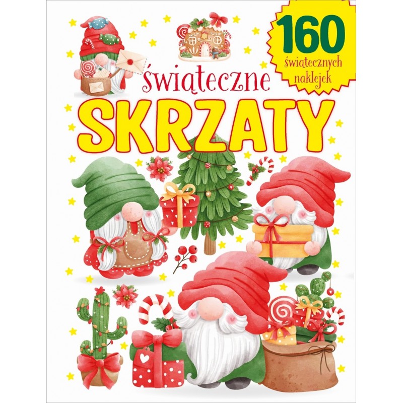 Skrzaty mają swój skrzaci świat - skrzacie świąteczne sprawy, skrzacie domki i akcesoria, skrzacie hobby. Nasunięte głęboko na oczy czapki to ich znak rozpoznawczy. Ale bez obaw - szelmowskie uśmiechy zawsze zdradzają ich wesołą, nieco chochlikową naturę. Koloruj i uzupełniaj naklejkami. A może narysujesz też własne skrzaty?