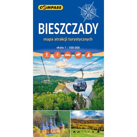 Mapa jednostronna z przewodnikiem turystycznym na odwrocieSkala: 1:100`000Format: B1 (68 x 98 cm)Co warto zwiedzić w Bieszczadach? Odpowiedzią na te pytania jest publikacja `Bieszczady – mapa atrakcji turystycznych`.To mapa całych Bieszczad w ujęciu turystycznym – obejmująca rozległy rejon od Komańczy na zachodzie po granicę z Ukrainą na wschodzie oraz od Birczy i Arłamowa na północy po Przełęcz Użocką na południu.Znaleźć na niej można wszystkie rodzaje atrakcji turystycznych Bieszczadów: przyrodnicze, architektoniczne, historyczne, kulturowe czy sportowo-rekreacyjne. Opis kilkudziesięciu – naszym zdaniem – najważniejszych atrakcji został umieszczony na odwrocie mapy, a sama mapa wzbogacona o kolorowe ikony. Niezależnie od tego, co preferujesz - Bieszczady samochodem, Bieszczady rowerem, Bieszczady pieszo, ta mapa będzie bardzo przydatna.Szczególnie polecana jest dla turystów zmotoryzowanych, jak i rowerowych. Jest przy tym na tyle dokładna, iż służyć może również do uprawiania turystyki pieszej – pokazano na niej bowiem także szlaki piesze. Nowe wydanie mapy uwzględnia wszelkie aktualizacje z prezentowanego obszaru. Pokazana jest m.in. oddana latem 2022 kolej gondolowa nad zaporą w Solinie oraz wcześniejsze obiekty, jak oddana jesienią 2020 r. wieża widokowa na Jeleniowatym nieopodal Mucznego czy żółty szlak na Dział z Przełęczy Wyżniej.
